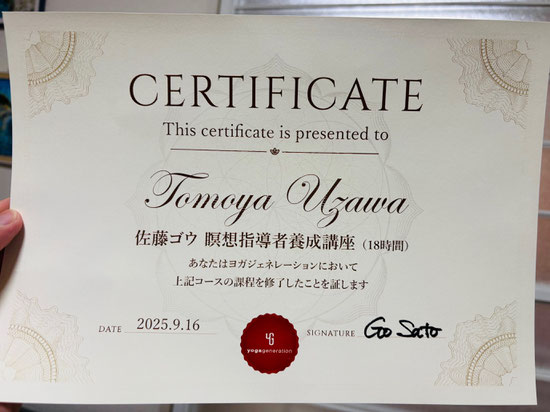 7月から9月にかけて、瞑想の指導者養成講座を受講していました。
